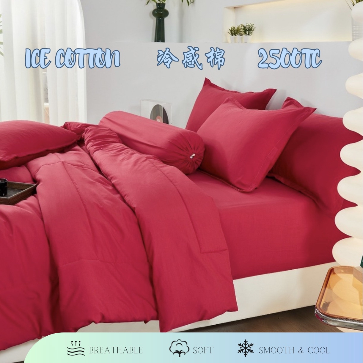 🍀 独特凉感配方 触感超越传统冰丝 🪴 不刮脚 · 不易起球 · 不易皱 🌿 柔软 · 透气 · 光滑 · 不闷热 ——————————————— 尺寸 Size ⤵️ 🛌 King:183×193×40cm 🛏️ Queen:153×193×40cm 🛏️ S.Single:107×193×30cm 套装内容⤵️ 💚 七件套(King / Queen) Comforter 加大棉被 Fitted Sheet 床笠 Bolster Case 抱枕套 Pillow Case 枕头套 ×4 💚 五件套(Super Single) Comforter 加大棉被 Fitted Sheet 床笠 Bolster Case 抱枕套 Pillow Case 枕头套 ×2